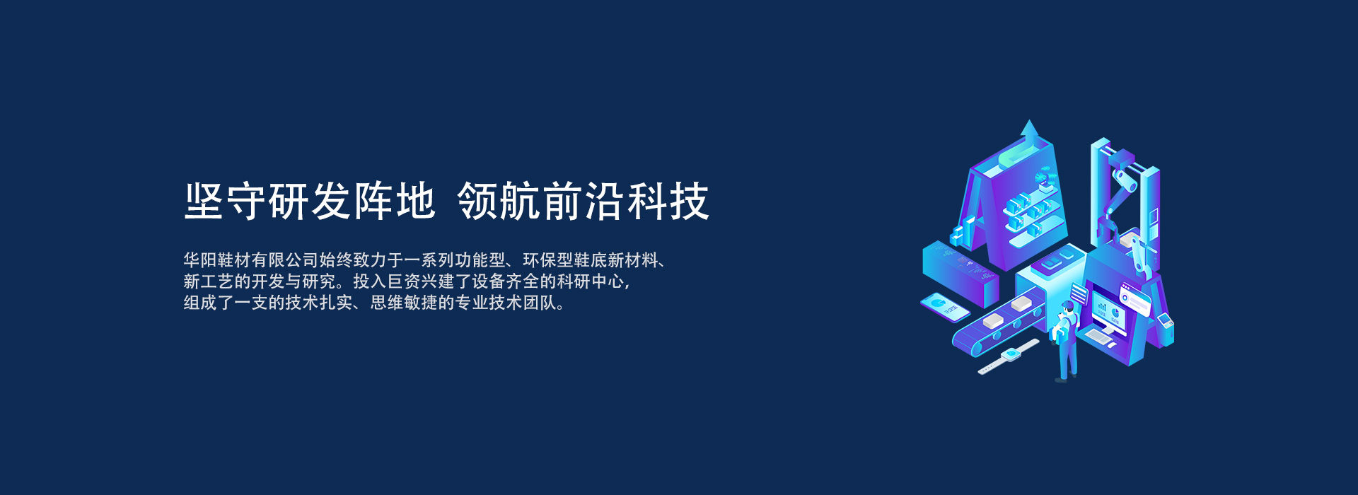 華陽鞋材于2004年成立,傳承晉江傳統工匠精神與現代化工藝技術完美融合,全面滿足客戶需求,成為國內市場上專業的鞋底制造商之一。多年來,華陽鞋材自主研發及引進最先進智能生產設備,致力于生產EVA一次(IP)成型鞋底、EVA二次(MD)成型鞋底、TPR鞋底、RB(橡膠)鞋底,TPU鞋底及配件及底材組合。